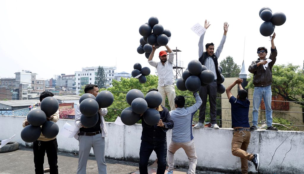 विद्यार्थी सङ्गठनमाथि प्रतिबन्धको विरोधमा कालो बेलुन उडाएर प्रदर्शन